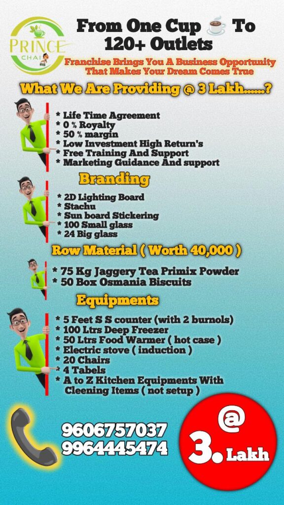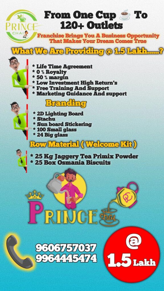 Prince Chai is a fast-growing Indian tea brand known for its unique jaggery chai. Started 2 years ago, we now have over 180+ successful outlets across India. Our goal is simple — serve authentic, healthy chai and empower individuals through easy-to-start franchise opportunities.